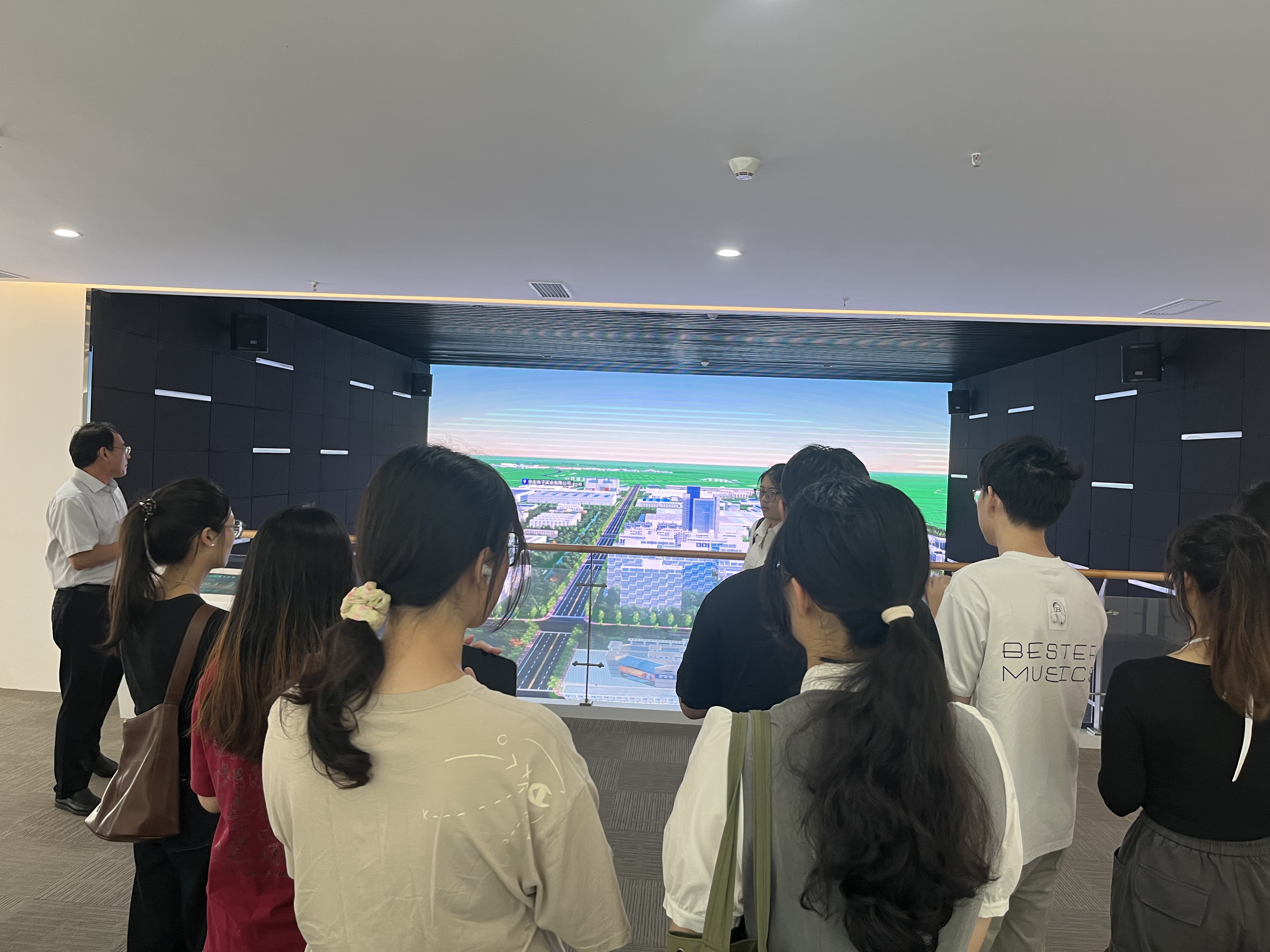 活动首站抵达扬州高新区规划展示馆。这座现代化展馆是了解扬州高新区发展蓝图的重要窗口。在讲解老师的引导下,同学们通过宏伟的沙盘模型、详尽的图文资料和先进的数字影像技术,系统了解了高新区的区位优势、发展战略、产业布局、创新生态和未来规划。