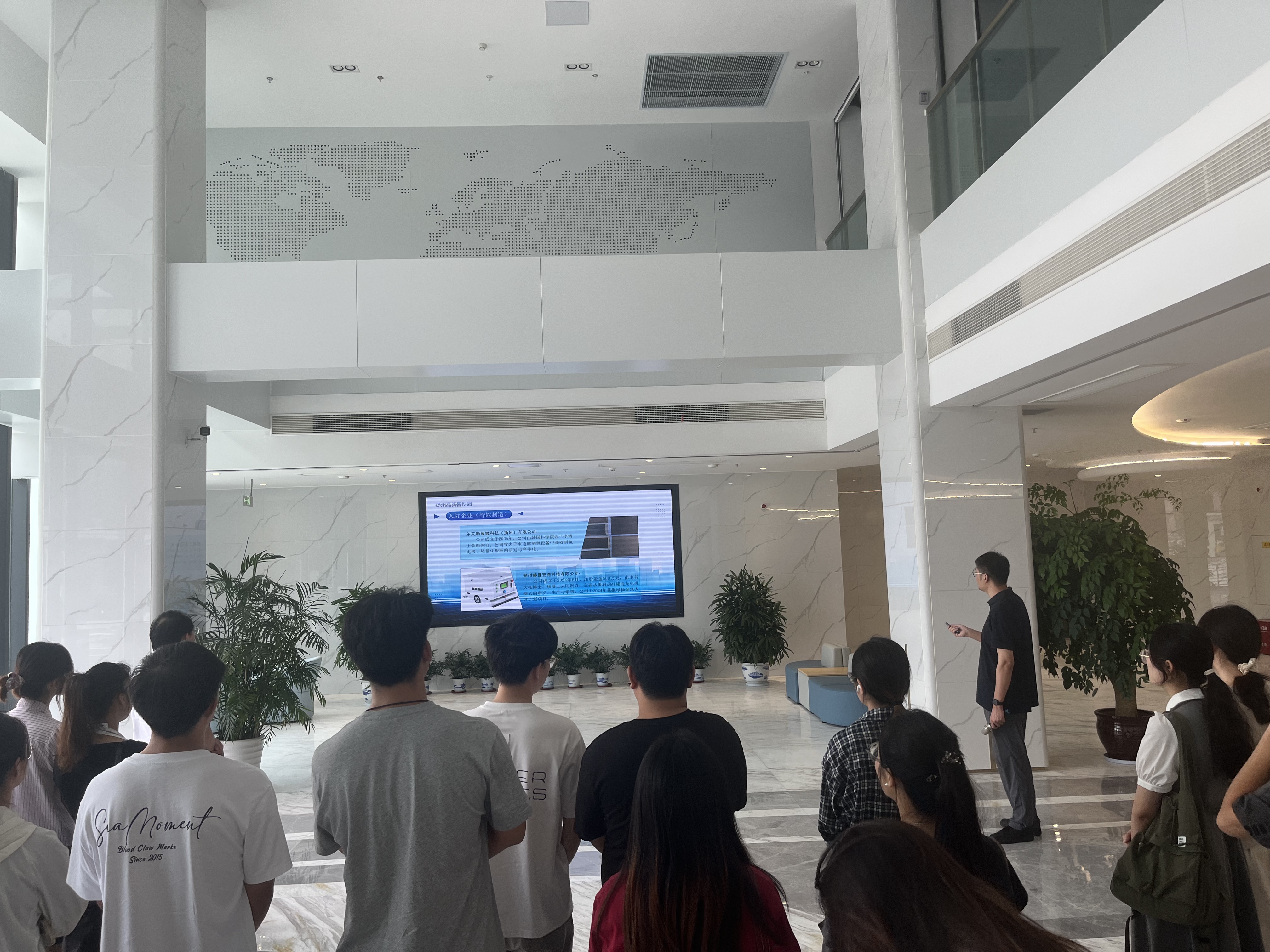 行程的最后一站是充满活力的扬州高新智创园。这里是为初创企业和成长型科技企业量身打造的孵化与加速平台,汇聚了众多的创新项目和创业团队。园区负责人向大家介绍了其功能定位、服务体系、扶持政策以及取得的孵化成果。师生们漫步于展厅,感受着浓厚的创新创业氛围,并与部分入驻企业的年轻创客进行了深入交流,聆听他们的创业故事、心得感悟以及面临的挑战。智创园所构建的从创意到项目、从孵化到产业化的全链条服务生态,让同学们看到了梦想照进现实的路径和支撑,极大地激发了他们的创新创业热情。